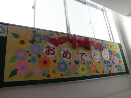 校舎内の掲示物は,卒業おめでとうの掲示板にあふれています。