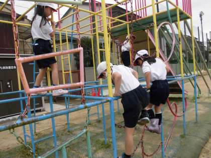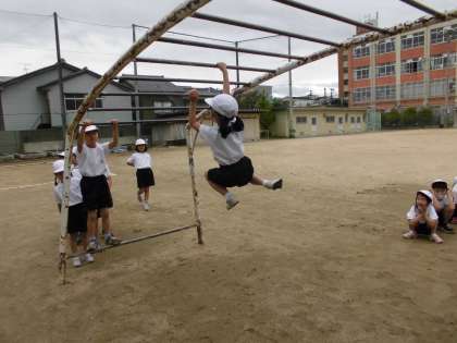 1年生は想像より腕の力があり,グングン総合遊具を登っていき,スイスイとうんていも進んでいて,とっても驚きました!!!