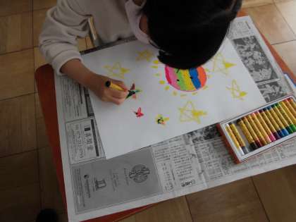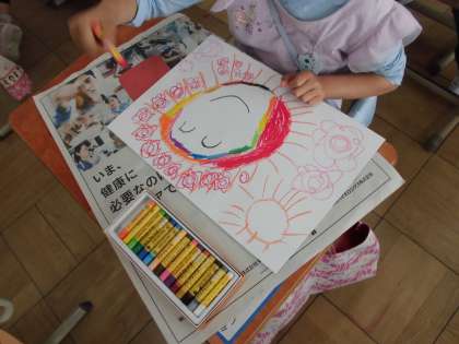 絵を見ながら,「これは,不思議な物がどんどん出てくる太陽なんだよ」「これが私で,これが妹」というようにいろんなお話をしてくれました。