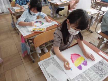 今日は図画工作の授業で,「かきたいものなあに」を行いました。