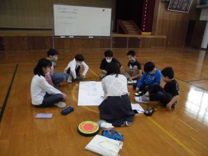 毎週月曜日の7時間目には,体育館で通級指導教室「たいよう教室」の学習があります。「たいよう教室」のメンバーの中に3組の5年生も一緒に参加させてもらっています。4月18日(月)は,今年度1回目の学習でした。メンバーの自己紹介,今年度学習したいことを話し合いました。学習グループの名前は,この日出た意見をもとに,それぞれ考えてくることになりました。