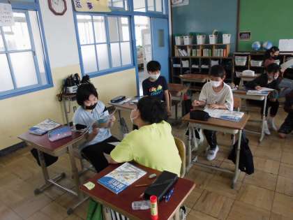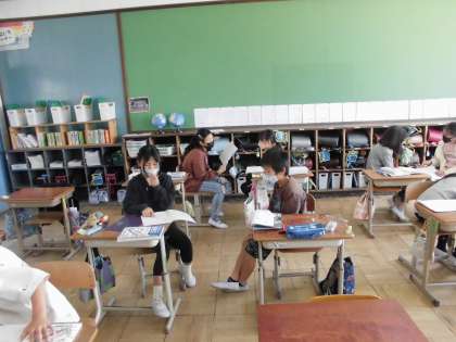 自分の考えをペアや全体に伝えています。(距離を保ちながら)