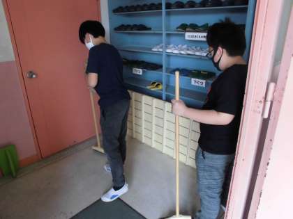 今日もがんばっていました!物を除けて掃除をしている人たちがいました。大事!!