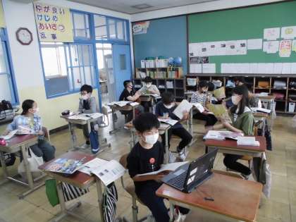 自分で調べたことをペアで交流したり,全体に伝えたりしています。