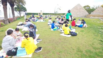 天気も良くなってきたので、芝生でお弁当を食べられました。みんなもりもり食べています。