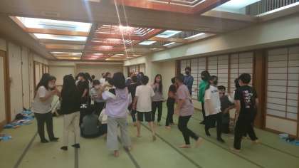 最後は進化じゃんけんです。たまご→さる→原始人→人間→神 と進化していきます。おお盛り上がりのゲームになりました。