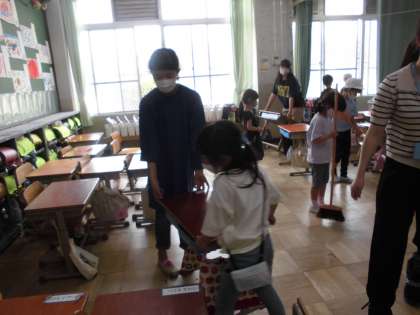 6年生は,1年生との関りを大切にしながらそうじを教えています。教えてもらった1年生は,そうじがとっても上手になりました。