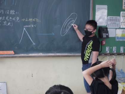 社会科の授業では,日本の川の特色について説明をしています。