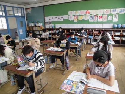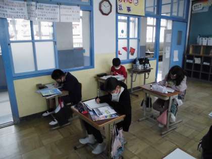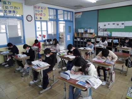 社会科「国土の地形の特色」について学習したあと,単元問題について自分でまとめています。
