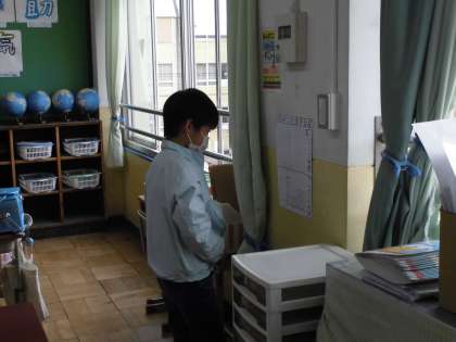 係活動で作ってくれた新聞を,クラスメイトがさっそく読んでいます。記事をつくる際にアンケートも取っていて,とても良い新聞に仕上がりました。