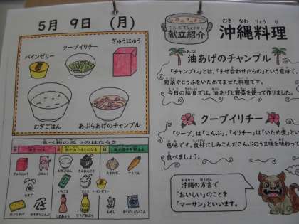 5月の給食カレンダーは,健康で元気いっぱい委員会のメンバーが色を塗ってくれています。1回目の委員会の話合いで年間の活動計画を話し合った時に,例年通り給食カレンダーに色を塗りたいという意見が出たようで,今年度も色を塗ってくれることになりました。色を塗ってもらった給食カレンダーは,スキャンしてTeamsで共有し各教室で見られるようにしています。給食室のサービスホールにも掲示しています。