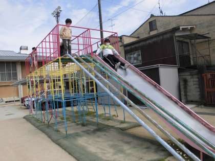 遊具の使い方について指導しました。