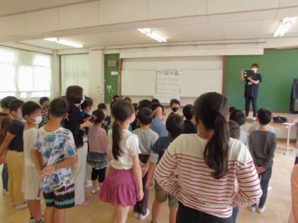 1年生をむかえる会に向けてのビデオ撮影をしました。昨日学年全体で合わせた時,どうしたら1年生に気持ちが伝わるかをみんなで考え,より良くするためのポイントを話し合いました。試し撮りのビデオも見てさらによくするためにみんなで気持ちを合わせて,言葉や歌を心を込めて発表しました。とても明るく元気いっぱいのビデオになりました。