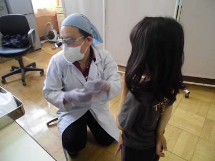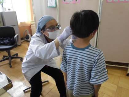 鼻を診てもらうのは少し怖そうにしていましたが,学校医の先生のお話をしっかり聞いて検診を終えることができました。
