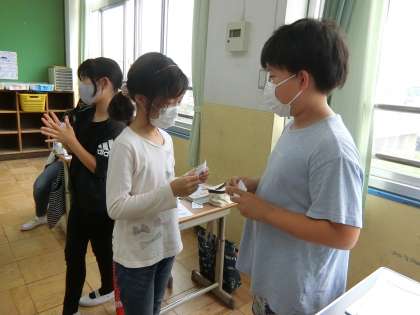外国語の学習で,名刺の交換をしました。自分の名前とその綴り,好きなものなどについて話していました。友達について色々なことが分かり,嬉しかったようです。