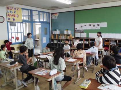 スモールトークをしています。全体の場でも上手に話していました。