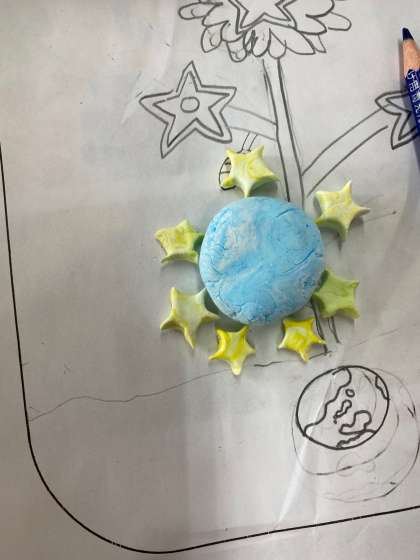 考えたイメージスケッチをもとに,紙粘土でまぼろしの花のたねを作りました。