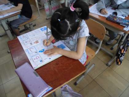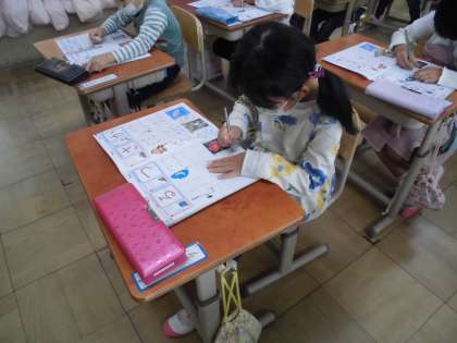 日に日に字を書く姿勢がとっても良くなっていて,感心しています。正しい姿勢が,美しい丁寧な字に繋がりますね!その調子です!!