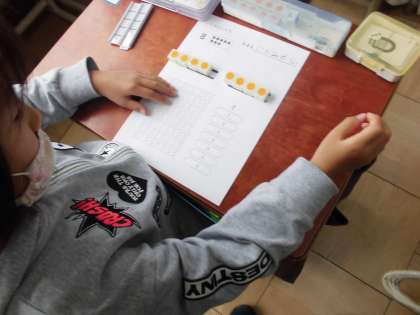 数図ブロックを使って考えることで,沢山の「○と○」を考えることができました!明日は9の数について考えます!
