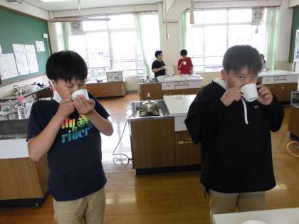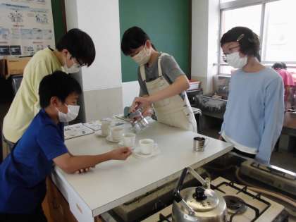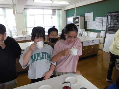 お茶をいれた後は,同じ方向を向いて立ったり座ったりして飲んでいました。お家でも挑戦してみてください。