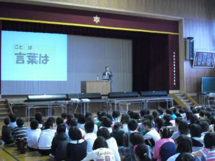 秋といえば,スポーツの秋,食欲の秋,芸術の秋,読書の秋・・・校長先生はその中でも「読書の秋」を取り上げられ,読書で豊かになる「言葉」について,お話をされました。優しい言葉があふれる朱七校になっていくことを願いながら,秋の夜長,読書にふけりたいと思います。