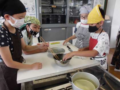 安全に気を付けて「ほうれん草のおひたし」を作っています。