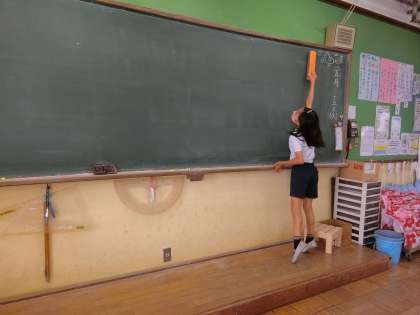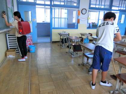 7時間授業で,教室掃除の回数が減っています。担任が放課後に掃除をしていると,ふらっと教室に来た子が,掃除の手伝いをしてくれました。