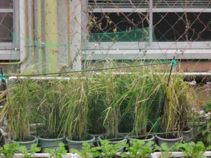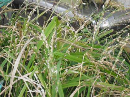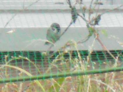 早朝の玄関前,やっぱり!スズメが来ています。稲を覆っている網の中に入って懸命にお米をつついています。せっかく実ったお米でしたが,気がつけばもうほとんど実は残っていません。スズメとの戦いは,今年もスズメの勝ちのようです。