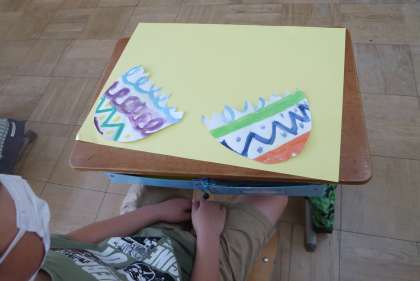 まずは,画用紙のどこにたまごの殻を置こうかな?