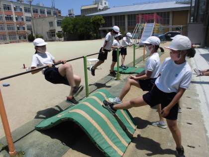 鉄棒の学習を行っています。