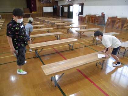 【5・6年 体育館準備】