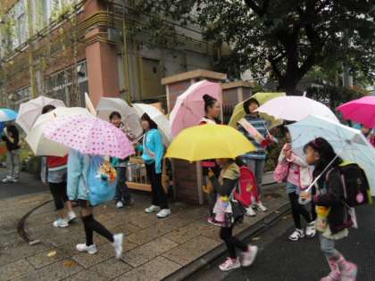 11月11日(金),1週間続けてきたあいさつ運動最終日です。あいにくの雨となりましたが,児童会の子どもたちは今日も朝早くから校門に立ってくれました。