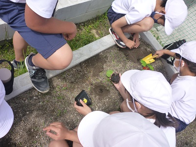 昨日,「先生,ツルレイシのつるが伸びてきたので,そろそろ植え替えた方がいいと思います。」という子どもたちの声から,畑に植え替えました。