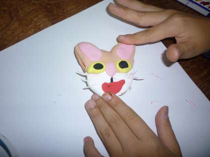 と想像しながら,作りました。色を混ぜてマーブル模様にしたり,自分の飼っている動物を思い浮かべながら作ったりと,ひとりひとりが自分の思いを大切にしながら作っていました。