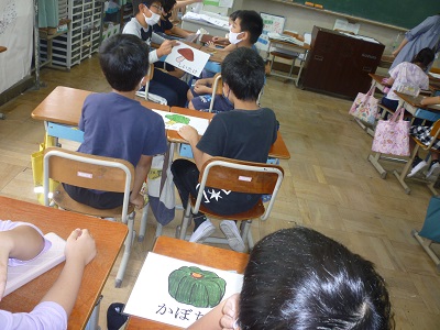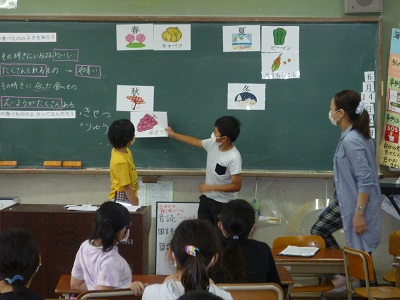栄養教諭の先生による食の指導がありました。今日の学習は「旬の食べ物のよさを知ろう」でした。
