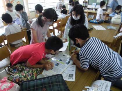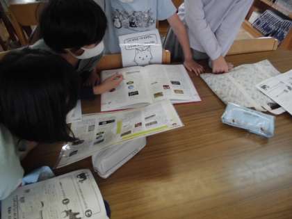 図書の授業でポプラディアを使い,学びながら楽しめるクロスワードをしました。班のメンバーでたくさん悩んで協力しながら答えを導く様子がとても一生懸命でかっこよかったです!