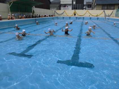子ども達も健康な状態で,元気いっぱい活動に参加できました。始めは不安やドキドキがあったと思いますが,何回も水の中に入ることで徐々に慣れてきました。