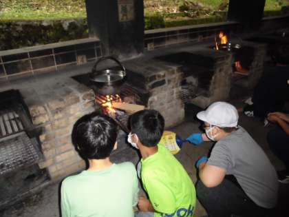 初めての野外炊事では,家庭科の調理実習をいかして要領よく協力しながら行っていました。互いに協力して作ったすき焼きは「めっちゃ,おいしい!」と満腹です。