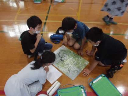 NPO法人の方,NISSHA株式会社の方にご来校いただき「まちくさ」の学習の進め方についてお話を聞きました。まちくさ博士から「まちくさ」の見つけ方を聞いた後,運動場で「まちくさ」を見つけ,写真を撮りました。今後,写真をカードに貼り,「まちくさカード」に仕上げていく予定です。どんなカードができるのか楽しみです。
