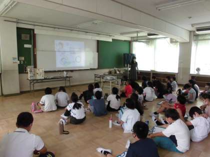 薬は正しい用量を守って服用することや、お茶やジュースで飲むとなぜいけないのか、実演を交えながら、分かりやすく教えてくださいました。5年生は真剣に話を聞いていました。何よりも病気に負けない元気な体づくりをしておくことや自然治癒力を高めておくことを改めて感じました。