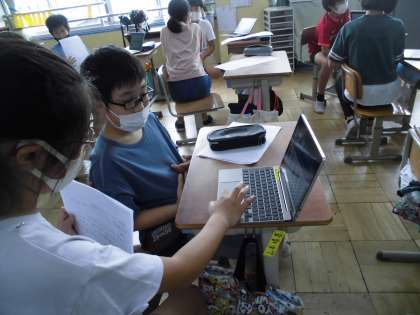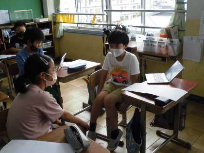 自分が調べたことを交流しています。