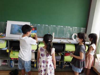 中間休みには、久しぶりに運動場で遊んだり、夏休みの宿題を見合ったりしていました。