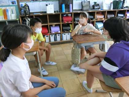 今日の授業では,夏休みの思い出を「さいころトーク」で話したり,自由工作・自由研究の発表会を行ったりしました。久しぶりにクラスの友達に会えてうれしそうです。たくさん話していました。