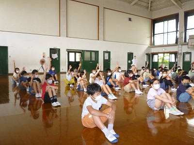 今日,2学期の始業式がありました。校長先生から,学校目標「自分のよさを磨き,つながりを大切にする子ども」のつながりとは何かについて,お話がありました。