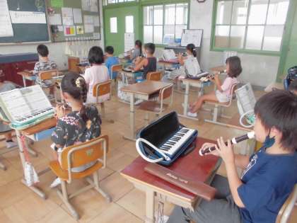 と声が上がりました。その成果がしっかり出ていたと思います。柔らかくきれいな音で演奏していました。つい3か月ほど前に初めてリコーダーに出会った3年生とは思えないくらい上達していましたし,自信をもって演奏していました。これからたくさんの曲に出会ったり,低い音を覚えたりしていきますが,楽しくリコーダーに取り組んでほしいと思います。