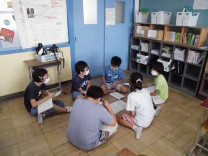 自分の考えを整理するために友達と話をしています。次回の意見交流会が楽しみです。