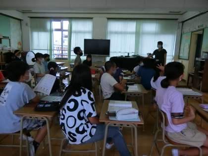 音楽の時間に音楽室をのぞくと…,楽しそうに和音の学習をしていました。音の高さに注目して,耳をすませていました。