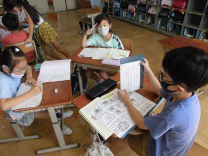 国語の学習で,言葉で道案内をするときの大切なポイントを学習しました。そして,グループで地図を使って,話し手と聞き手に分かれて道案内をしました。分かりやすく案内するために,通る道の順に説明したり,曲がるところや方向,目印になるものをはっきり言ったりすることを意識して案内することができていました。聞き手もメモを取りながら,案内されたとおりに行けるように大事なことを落とさずに聞くことができていました。これから道案内する機会があれば,ぜひ今回の学習を生かしてほしいと思います。