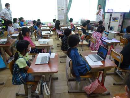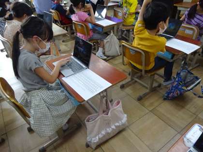 ログインやシャットダウンの方法を学習しました。はじめはパスワードを打ち込むのに苦戦している様子もありましたが,2回・3回と繰り返すことで1人でログインからシャットダウンまで行えるようになりました。とってもワクワクして学習に参加していました。これからもGIGA端末を使用する機会が増えていきますので,端末に慣れながら学習に繋げていければと思います。