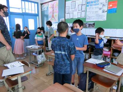 今日の外国語科の学習では,「What time〜?」という表現を使って,Me, tooチェーンをしました。結果は見事,成功でした!だんだんとこの単元で学んでいる表現も使えるようになってきました。